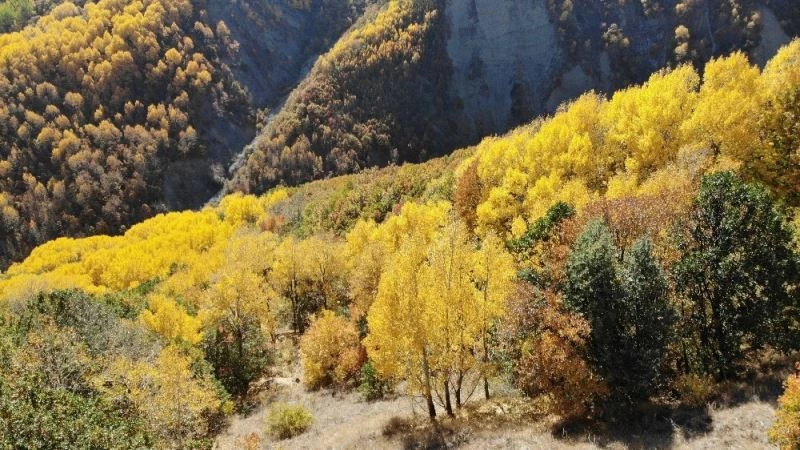 Erzincan’da sonbaharın gelmesiyle dağlarda renk cümbüşü oluşturan ağaçlar farklı bir güzelliğe büründü.