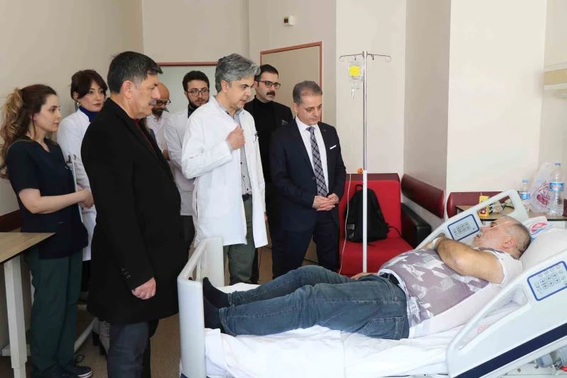 Kahramanmaraş merkezli 6 Şubat’ta meydana gelen ve 11 ili etkileyen 2 büyük depremde enkaz altından çıkarılan vatandaşlar, ülkenin farklı illerindeki hastanelere kaldırıldı. Depremin üzerinden 16 gün geçerken, yıkılan binaların altından kurtarılarak Erzincan’a getirilen yaralı depremzedelerin tedavisi de sürüyor. Deprem sonrası Erzincan’da ilçeler dahil toplamda 611 hastaya bakılan Mengücek Gazi Eğitim ve Araştırma Hastanesi’nde şuanda da 9 yaralı depremzedenin tedavisi sürüyor. Bu çerçevede depremzedeleri yalnız bırakmayarak tedavisi süren vatandaşları ziyaret eden Erzincan Belediye Başkanı Bekir Aksun, İl Sağlık Müdürü Dr. Cihan Tekin ve Başhekim Prof. Dr. Ufuk Kuyrukluyıldız depremzedelerin ihtiyaçlarını sorarak geçmiş olsun dileğinde bulundu.