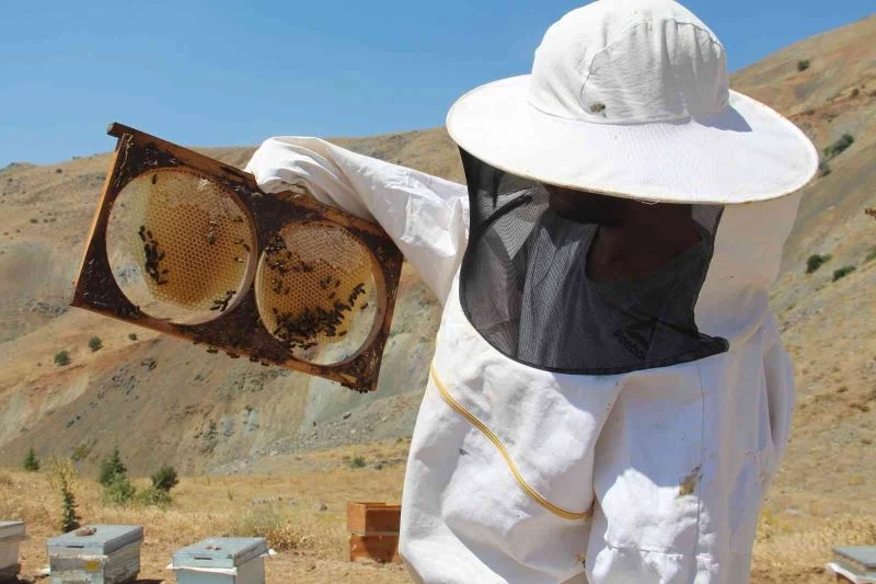 Erzincan’da, kavurucu sıcak altında giydikleri özel kıyafetler ve taktıkları maskelerle bal hasadı yapan arıcılar verimli bir yıl geçirmenin sevincini yaşıyor.