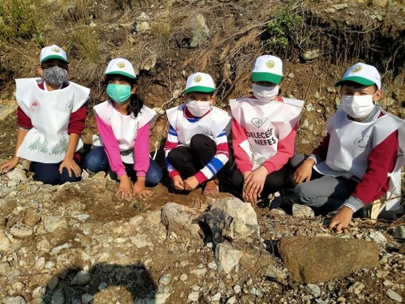 Hatay’ın Erzin ilçesinde de Milli Ağaçlandırma Günü kapsamında çam fidanları toprakla buluştu.