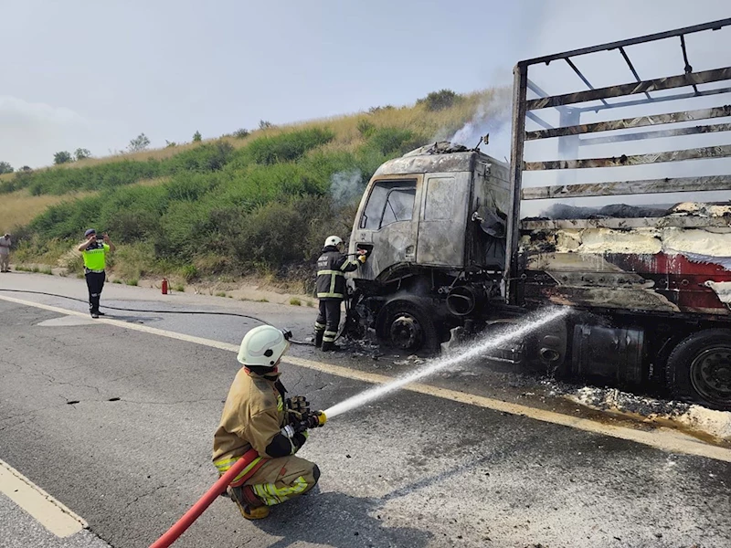 İtfaiye ekiplerince söndürülen yangında, tırda hasar oluştu.