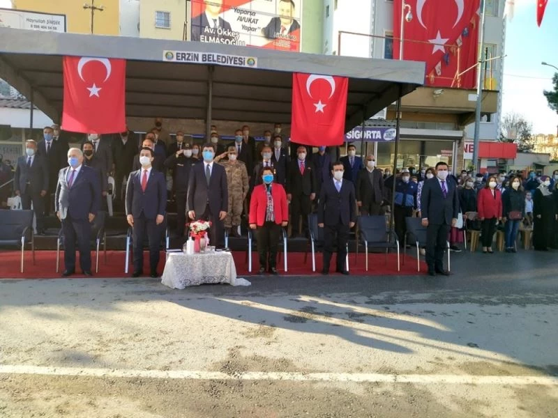 Çelenklerin Atatürk Anıtı’na sunulmasının ardından, 1 dakikalık saygı duruşunda bulunularak İstiklal Marşı okundu. Günün anlam ve önemini belirten konuşma Erzin Belediye Başkanı Ökkeş Elmasoğlu tarafından yapıldı.