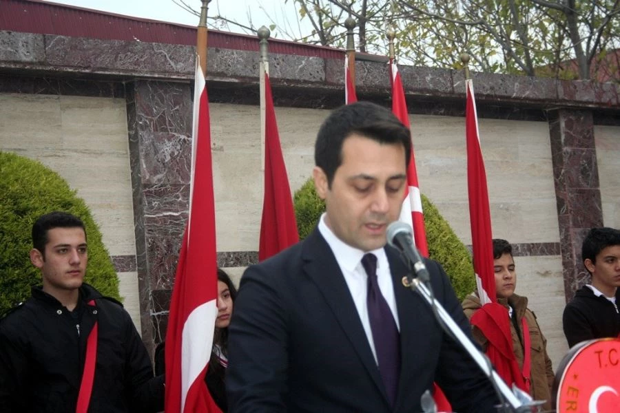 Cumhuriyet Meydanında gerçekleştirilen, Kaymakamlık, Belediye Başkanlığı ve siyasi partilerin çelenklerinin Atatürk Anıtı’na sunulmasıyla başlayan törende, saygı duruşu ve İstiklal Marşı okundu. Belediye Başkanı Ökkeş Elmasoğlu Erzin ovasının birçok medeniyete, tarihi olaylara sahne olduğunu belirterek “Türkmen boylarının yurt edinmesiyle tarihte yerini alan, İsos Antik Kenti, Su Kamerleri, Burnaz Antik Limanı ile Romalı Çiçero’nun, Venedikli Marko Polo’nun, Mekadonyalı İskender’in, İranlı Dara’nın hatırası taşıyan, yaylaları, şifalı suları, doğası ile kadim bir coğrafyanın en güzel ilçelerinden biriyiz” dedi.