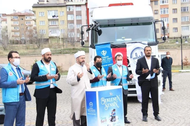 Erzurum İl Müftüsü Şahin Yıldırım’ın yapığı duanın ardından araç İdlib’e uğurlandı.