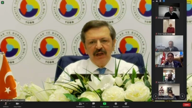 Erzurum Ticaret Borsası Yönetim Kurulu Başkanı Hakan Oral’da video konferans aracılığı katıldığı toplantıda üye ve esnafların sorun ve talepleri başta olmak üzere ekonomik gündeme ilişkin konuları TOBB Başkanı Rifat Hisarcıklıoğlu’na aktardı.