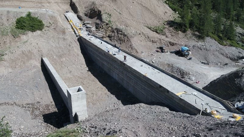 Erzurum Oltu Esenyamaç Göletinde çalışmaların devam ettiğini belirten DSİ Genel Müdürü Kaya Yıldız, “Oltu Esenyamaç Göleti 410 dekar zirai arazinin sulanmasına hizmet edecek. Beton ağırlıklı gövde tipinde inşa edilen gölette bugüne kadar yol, batardo, cebri boru imalatları ile gövdede yaklaşık 5500 m3 beton imalatı tamamlanarak yüzde 90 seviyesinde gerçekleşme sağlandı. 2021 yılı sonunda su tutmayı hedeflediğimiz Gölette, vana imalatları, dolusavak düşü havuzu imalatları ve kret üzeri korkuluk imalatlarına devam edilmektedir. Temelden yüksekliği 17 metre ve su depolama kapasitesi 0,11 milyon m3 olan Erzurum Oltu Esenyamaç Gölet’inin tamamlanması ile 2021 yılı birim fiyatları ile ülke ekonomisine yıllık 250 bin TL katkı sağlanması hedeflenmektedir” dedi.