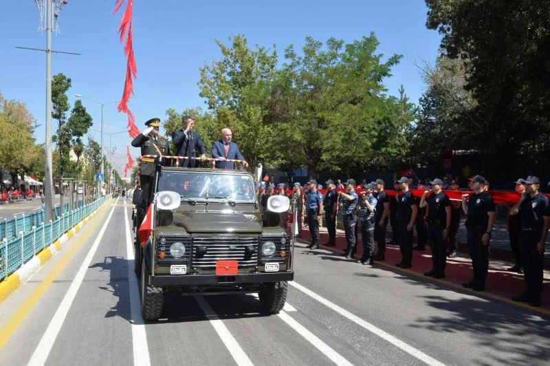 Hastaneler Caddesi’nde devam kutlama programlarında Vali Okay Memiş, 9. Kolordu Komutan Vekili Tuğgeneral Berat Acar ve Büyükşehir Belediye Başkanı Mehmet Sekmen askeri tören aracı ile alanı gezerek, vatandaşların bayramını kutladı.