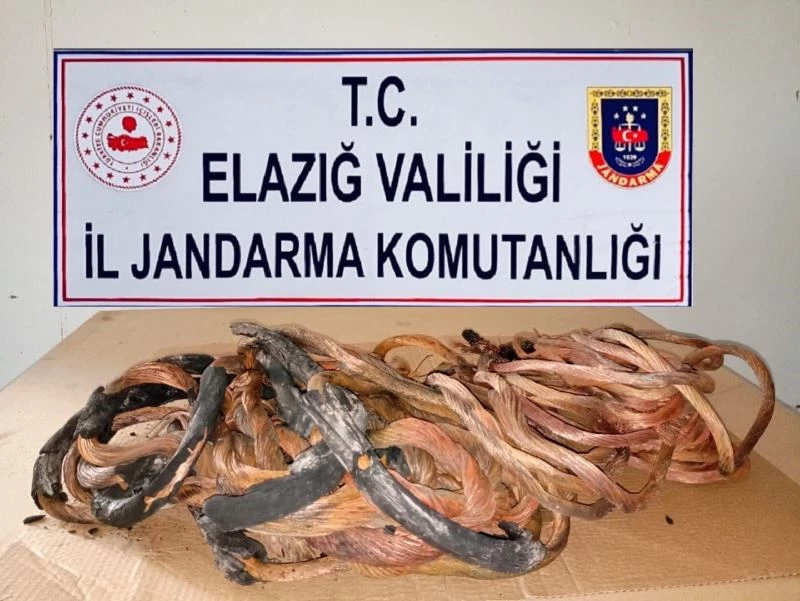 Alınan bilgiye göre, İl Jandarma Komutanlığına bağlı devriye ekipleri, çalışma yaparken Elazığ’ın Palu ilçesinde ormanlık alanda 2 kişinin bakır kablo yaktığını fark etti. Ekipler, şüpheli C.K. (30) ile S.D’yi (18) suç üstü yakaladı. Yakalanan şüphelilerin Erzurum’da yapımı süren yol tünel inşaatından bakır kabloları çaldığı ortaya çıktı.