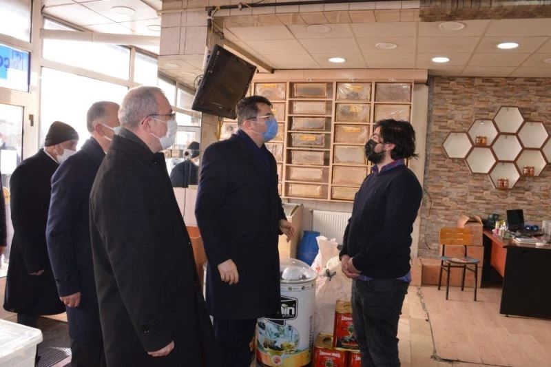 İçişleri Bakanlığı’nın 81 il valiliğine gönderdiği "Dinamik Denetim Süreci" konulu genelge kapsamında Erzurum’da İçişleri Bakanlığı Genel Sekreteri Ömer Toraman, Vali Okay Memiş, Emniyet Müdürü Mehmet Aslan, Esnaf ve Sanatkarlar Odaları Birliği (ESOB) Başkanı Rasim Fırat ile birlikte kentin işlek bölgelerinde bulunan iş yerleri, fırınları ve restoranları denetledi. Vali Memiş esnafı maske, mesafe ve hijyen konusunda uyararak “Esnafımız lokantasının açık kalmasını istiyorsa kurallara uyacak. Top esnafımızda, kurallara dikkat edelim” dedi.