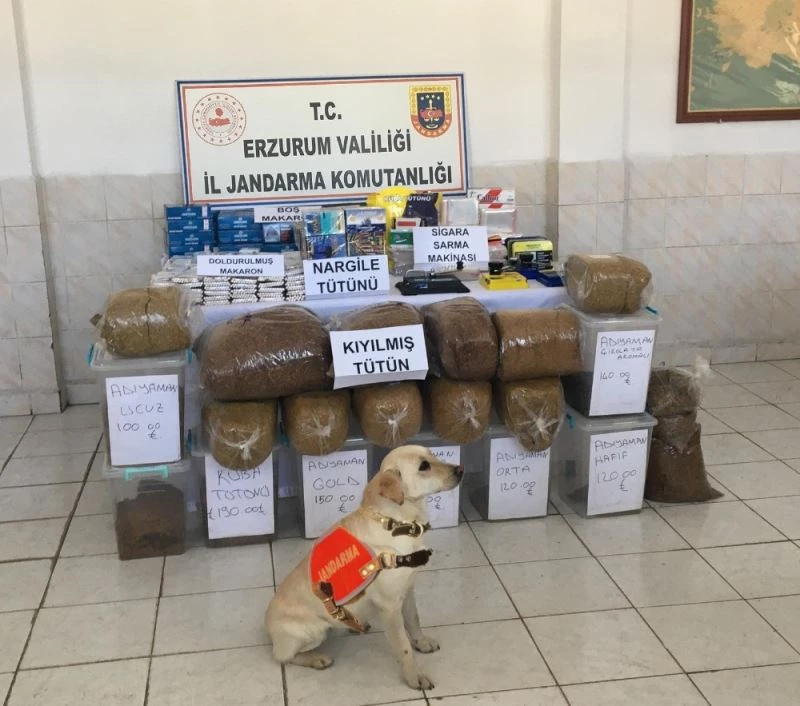 Oltu Cumhuriyet Başsavcılığı koordinesinde Erzurum İl Jandarma Komutanlığı KOM Şube Müdürlüğü ve Narman İlçe Jandarma Komutanlığı unsurlarınca kaçakçılıkla mücadele kapsamında Narman ilçesinde ikamet eden bir şahsın kaçak tütün ve sigara sattığı belirlendi. Oltu Cumhuriyet Başsavcılığından alınan arama kararına istinaden şüpheli şahsın evinde ve iş yerinde yapılan aramada 93 kilogram kıyılmış sarmalık tütün, 7 bin 520 adet doldurulmuş makaron, 110 karton içi boş makaron, 96 paket nargile tütünü, 6 adet sigara sarma makinesi, 2 adet sigara doldurma aparatı ele geçirildi. Gözaltına alınan şüpheli adli makamlara sevk edildi.