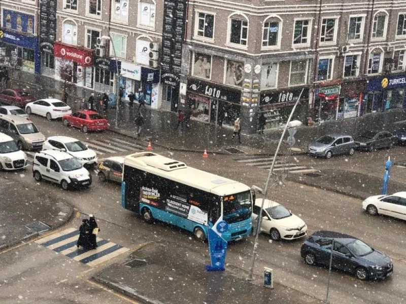 Sabah saatlerinden itibaren zaman zaman etkisini artıran kar yağışı araç ve yaya trafiğinde aksamalara neden oldu.