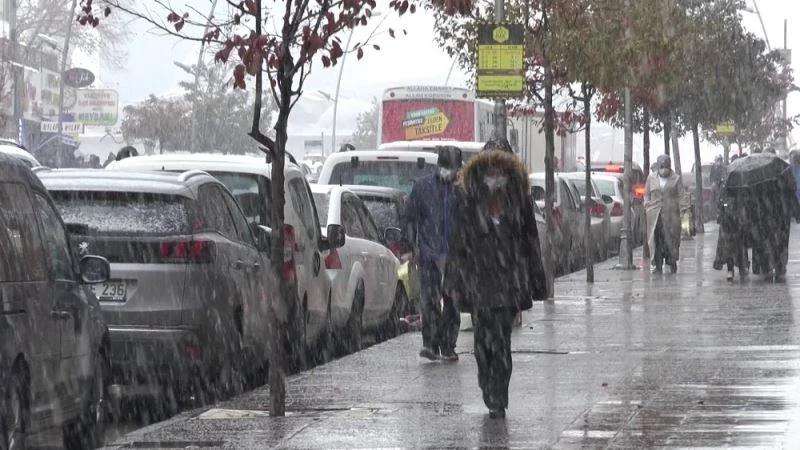 Erzurum’da kar yağışı sürücülere ve yayalara zor anlar yaşattı