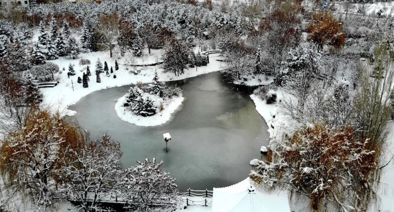 Erzurum’da kar yağışının ardından, dünyada deniz seviyesinden 2 bin metre yükseklikteki 7. park olan Ata Botanik Park içerisindeki süs havuzu dondu, ağaçlar karla kaplandı. Kış mevsimiyle birlikte doğal güzelliğiyle bilinen Ata Botanik Park adeta kartpostallık görüntüler sunarken, manzarayı görmek isteyen vatandaşlar botanik parkına akın ediyor. Kartpostallık manzara havadan görüntülendi.