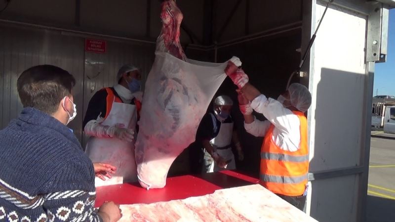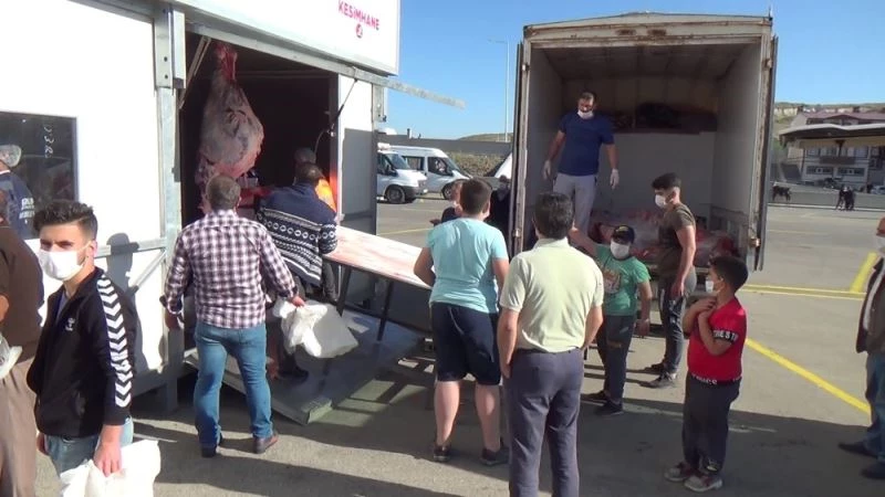 Erzurum Büyükşehir Belediyesince canlı hayvan pazarı ve kentin muhtelif bölgelerinde kurulan seyyar mezbahalarda kurban kesimi yapıldı. Vatandaşlar uzman kasaplar nezaretinde pandemi sürecine uygun olarak hijyenik ortamlarda kurbanlarını kestiler. Maskeli olarak çalışan kasaplar, numara ve randevu sistemi ile vatandaşların kurbanlarını tek tek keserek parçaladılar.