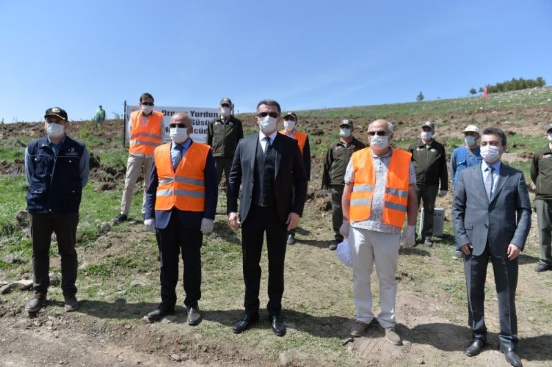 Erzurum Merkez Nene Hatun Mahallesi Sivişli tabyalalarında 172 dekar olana 30 bin adet sarıçam ve huş fidanları dikimi yapıldı.