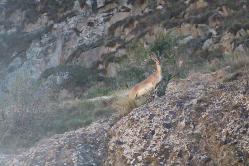Erzurum’da yaban keçisi sürücü görüntülendi.