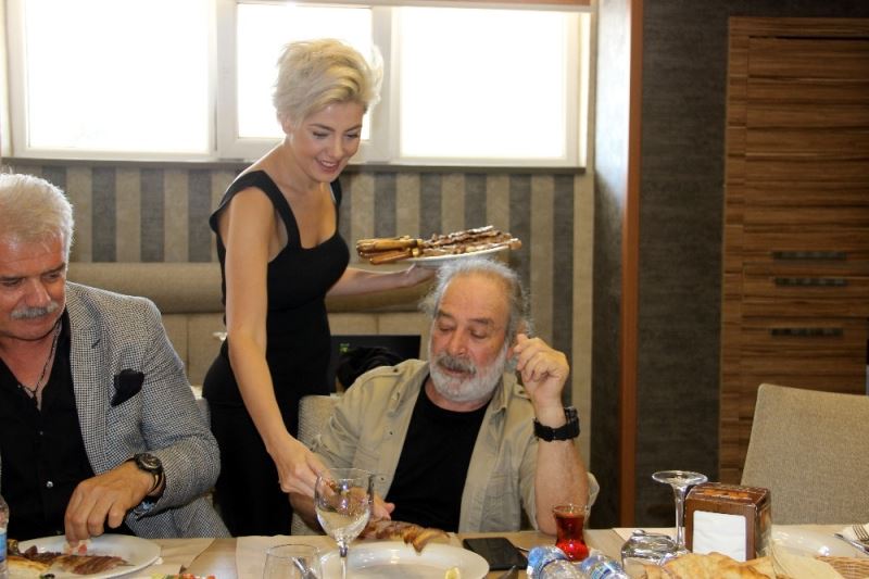 Muammer Usta’da düzenlenen yemekli toplantı öncesi ünlü oyuncu Burcu Binici ve Burak Bozdağ cağ kebap kesti. Oyuncu Burcu Binici, cağ kebabını elleriyle oyuncu arkadaşlarına servis etti.