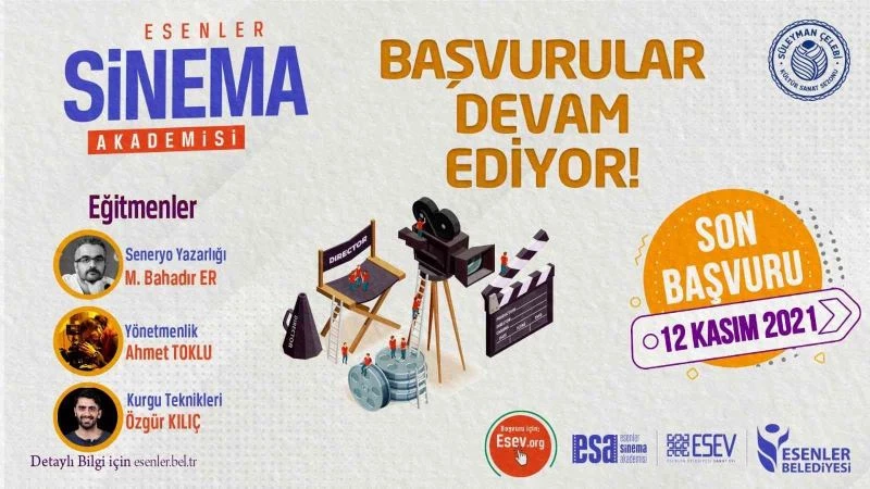 Sinema alanına yeni yetenekler kazandırmak amacıyla Esenler Belediyesi tarafından düzenlenen Sinema Akademisi’nin dördüncü dönem başvuruları devam ediyor. Pratik ağırlıklı dört aylık bir eğitimin verileceği akademiye başvurular 12 Kasım’a kadar devam ediyor.