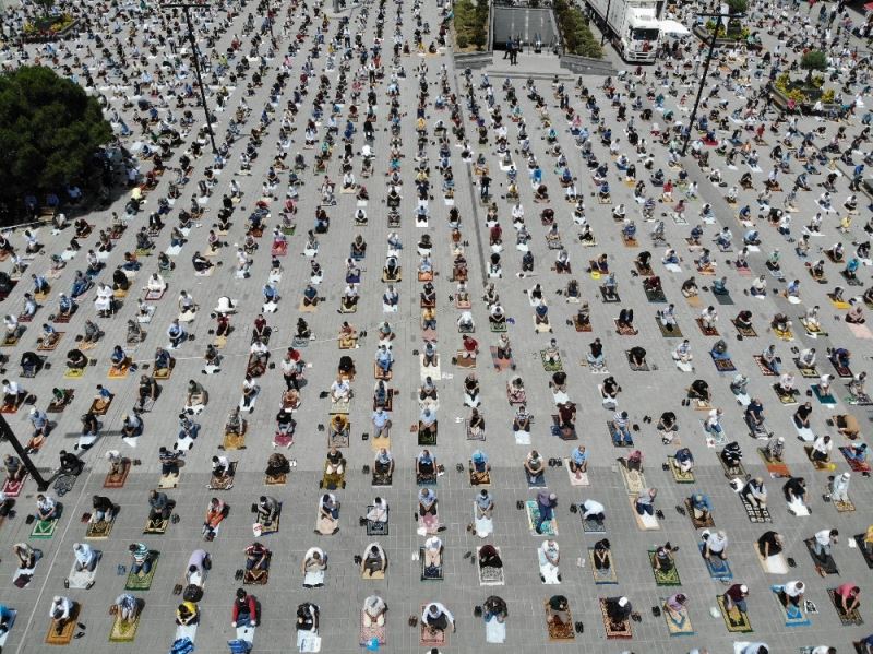 Korona virüs tedbirleri kapsamında sosyal mesafe ve maske kuralına uyan vatandaşlar cuma namazı için Esenyurt Meydanı’na akın etti. Binlerce kişinin katıldığı cuma namazında yoğun önlemler alındı. Namaz vaktinde gelen vatandaşlar sosyal mesafe kuralı, maske kuralına uyarak kendi getirdikleri seccadeler ile namazlarını kıldı. Namaz öncesi alan dezenfekte edilerek namaza hazır bir hale getirildi. Maskesiz olan vatandaşlar alana alınmadı. Polis ve zabıta ekipleri yoğun güvenlik tedbirleri aldı. Açık alanda kılınan fiziki mesafeli cuma namazı havadan da görüntülendi.