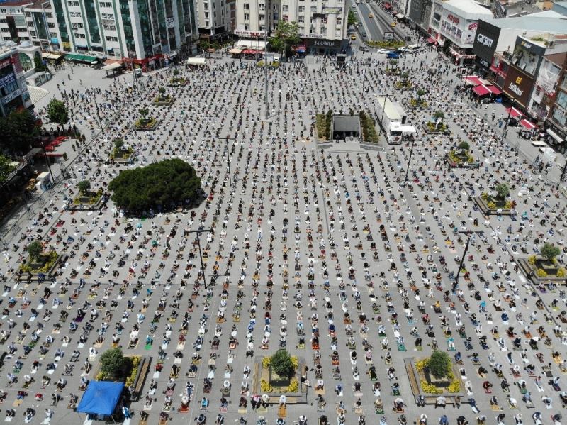 Korona virüs tedbirleri kapsamında Esenyurt Meydanı’nda toplu şekilde üçüncü kez cuma namazı kılındı. Binlerce kişinin katıldığı ve sosyal mesafe konusunda sık sık uyarıların yapıldığı cuma namazı havadan görüntülendi.