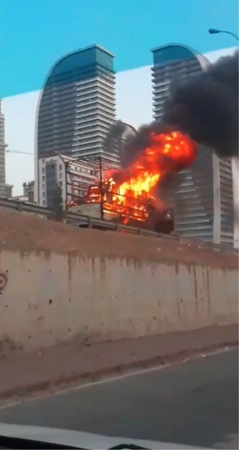 Esenyurt TEM bağlantı yolunda bir kamyon alev alev yandı