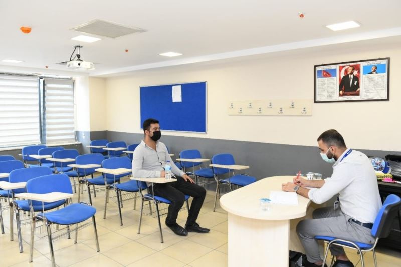 Esenyurt’ta faaliyet gösteren bir firmaya alınacak 503 kişi için yapılan mülakatlar, Esenyurt Belediyesi Nene Hatun Kültür Merkezinde yapıldı. Korona virüs önlemleri kapsamında, iki ayrı grup halinde yapılan mülakatlarda, vatandaşlar salona ateşleri ölçülerek alındı. Kişiye özel dezenfektan, kalem gibi ürünlerin dağıtıldığı mülakatlarda oturma düzeni sosyal mesafe kuralına uygun olarak ayarlandı.