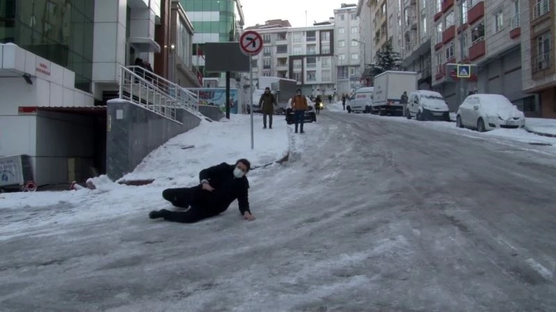 İstanbul’da şiddetli kar yağışının ardından gece don ve buzlanma etkili oldu. Esenyurt Saadetdere Mahallesi’nde sabah işe gitmek üzere evlerinden çıkan vatandaşlar ve sürücüler buz tutan yollarda zor anlar yaşadı. Adeta buz pistine dönen yollarda yürümeye çalışan vatandaşlar, ayakta kalmakta güçlük çekti. Vatandaşların buzla imtihanı kameralara yansıdı. Birçok kişinin buz tutan yolda yürümeye çalışırken düştüğü görüldü.
