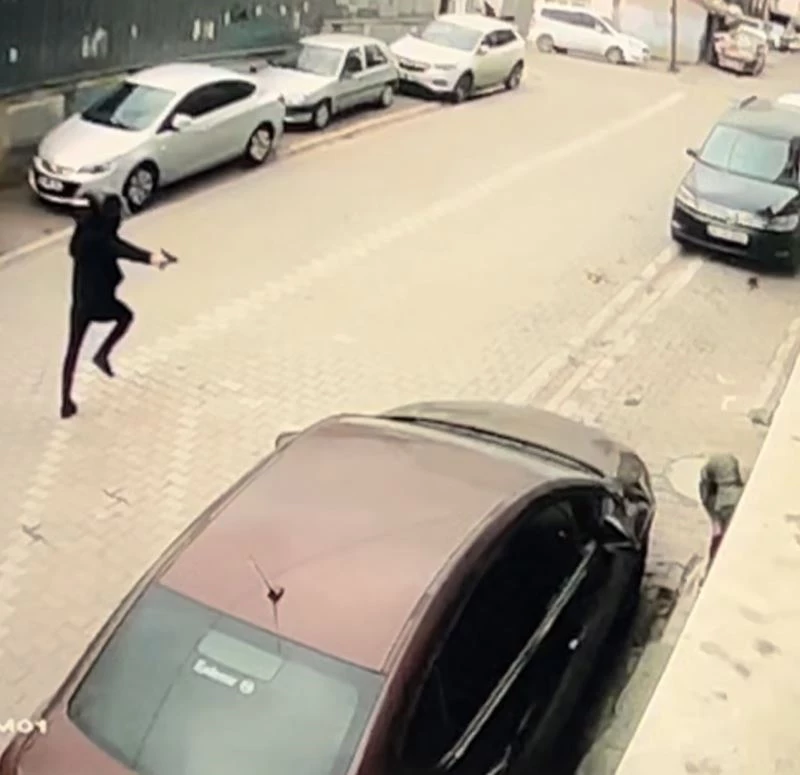 Güpegündüz cadde ortasında yaşanan çatışma, kameralara saniye saniye yansıdı. Görüntülerde silahla ateş ettikten sonra olay yerinden kaçmaya çalışan motosikletli iki şahıs, kendilerini takip eden kişinin ateşe etmesi üzerine yere düşüyor. Araçları kendilerine siper eden şahıslar, karşılıklı birbirlerine ateş ediyor.