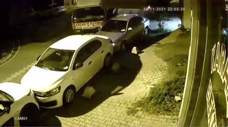 Esenyurt’ta freni boşalan vinç, sokakta bulunan park halindeki araçlara çarptı. O anlar güvenlik kamerasına yansıdı.