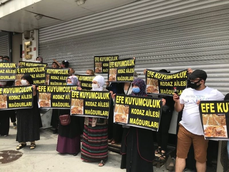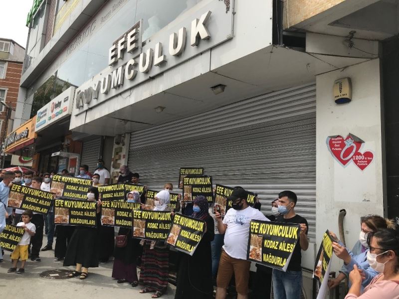Esenyurt’ta uzun zamandır kuyumculuk yapan bir iş yerine altınlarını verip paralarını alamayan vatandaşlar, bir kez daha eylem yaparak mağduriyetlerini dile getirdiler. Vatandaşlar, cezaevinde bulunan kuyumcu sahiplerinin altın ve paralarını geri vermesini istediler.