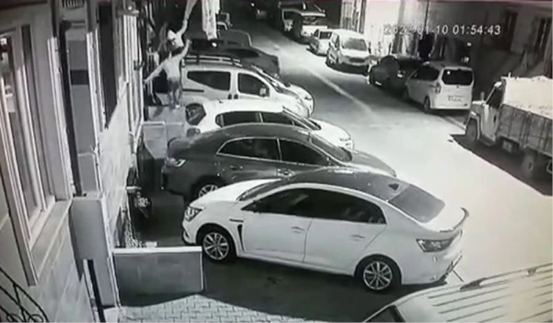Yaşanan anlar güvenlik kamerası tarafından kaydedildi. Görüntülerde bir kadın 2 şüphelinin sokakta dolaşması ve sonrasında balkonda asılı battaniyeye ulaşmak için zıplamaları görülüyor. Görüntülerin devamında ise kadın şüphelinin erkek şüphelinin yardımıyla aracın üstüne çıkıp battaniyeyi aşağıya doğru çekmesi görülüyor.