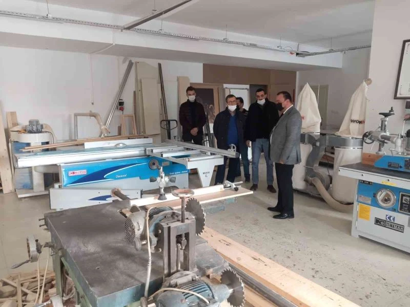 Kastamonu Eğitim Merkezi’nde (KASMEK) kadın marangozhanesi, ahşap restorasyon birimi, bağlama, gitar, ut, robotik kodlama ve piyano kurslarını çok önemli bulduğunu belirten Dr. Enis Yeter, çalışmalarla ilgili AR-GE Müdürü Resul Köprülü’den bilgiler aldı.