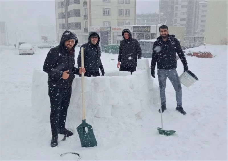 Kentte etkili olan kar yağışı sonrası bir grup genç, Onikişubat ilçesi Vadi Mahallesi’ndeki boş araziye kardan ev yapmak istedi. Uzun uğraşlar sonunda gençler, bir oda büyüklüğünde eskimoların yaşadığı evlerden yaptılar.