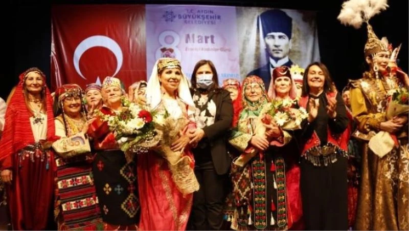 Aydın Büyükşehir Belediyesi Başkanı Özlem Çerçioğlu; program sonunda ‘Kahraman Türk Kadınları’ defilesini hazırlayan Hafize Erdoğan’a ve Eskişehir Anadolu Bacıları ekibine teşekkür ederek çiçek takdim etti.