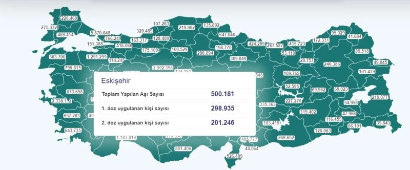 Eskişehir’de Korona virüse karşı yapılan aşı sayısı yarım milyonu geçti.