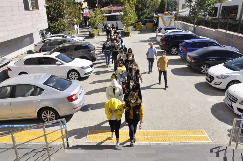 Operasyonlar kapsamında yakalanan ve aralarında kadınların da bulunduğu 30 kişi hakkında ‘Fuhşa teşvik, aracılık veya zorlama’, ‘Nitelikli dolandırıcılık’, ‘Kasten yaralama’, ‘Gasp’, ‘Uyuşturucu madde temin etmek, kullandırmak ve kullanmak’, ‘Tehdit ve hakaret’ suçlarından işlem yapıldı. Emniyette işlemleri yapılan 30 kişiden 12’si serbest bırakıldı. Emniyetteki işlemleri tamamlanan diğer 18 şüpheli ise Yunus Emre Devlet Hastanesi’ndeki sağlık kontrollerinin ardından mahkemeye sevk edildi.