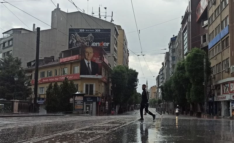 Eskişehir’de öğleden sonra bastıran sağanak yağış hayatı olumsuz etkilerken, kısıtlamadan muaf olarak dışarı çıkan vatandaşlara zor anlar yaşattı.
