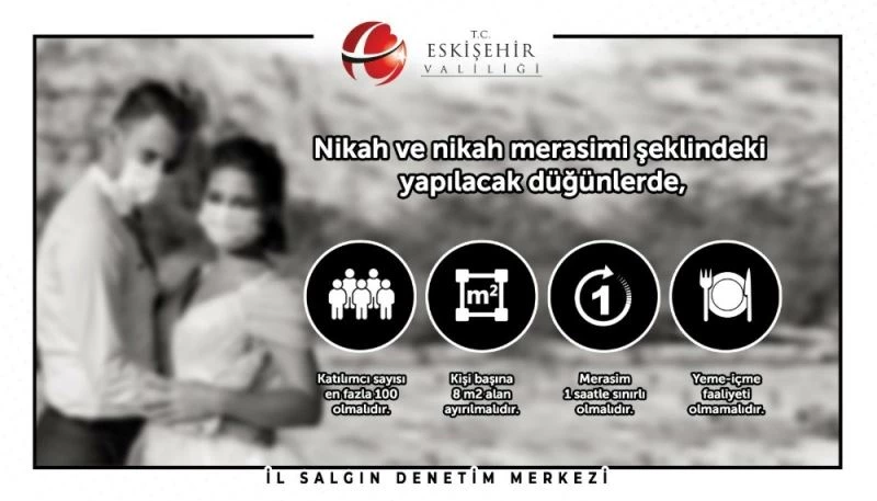 Eskişehir Valiliği, sosyal medya hesabı üzerinden, pandemi tedbirleri açısından nikâh ve nikâh merasimleriyle ilgili bir uyarı açıklaması yaptı.
