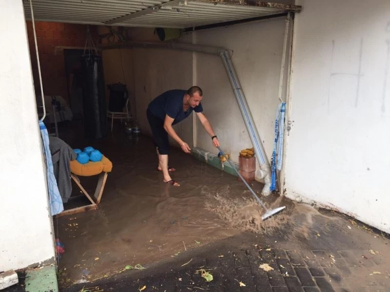 Eskişehir’in Odunpazarı ilçesine bağlı Millet Caddesi’nde bulunan bazı apartman girişlerine ve garajlara su doldu. Kendi imkanları ile suyu tahliye etmeye çalışan bir vatandaş, her yağışta aynı sorunla karşılaştıklarını ifade ederken, "Burada bütün malzemelerimiz ıslanıyor. Her seferinde aynı şeyi yaşıyoruz. 12 seneden beri bu binanın hali böyle. Her yağmur yağdığında buraları biz temizliyoruz apartman sakinleri olarak. Bıktık artık. 3 ay önce dedik. ’Şuraya bir tretuvar koyun. Su giriyor. Burayı böyle yapıyorsunuz, sonra su doluyor’ diye. Bizi kimse anlamıyor ama. Bir de telefonla arayınca belediyeden bize fırça atıyorlar ’bizim işimize karışmayın’ diye. Gelsinler yaptıklarını görsünler işte" ifadelerini kullandı.