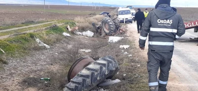 Edinilen bilgilere göre olay, Eskişehir Alpu Mihalıççık karayolunun 42. kilometresinde yaşandı. Alpu’dan Mihalıççık istikametine seyir halinde olan Ekrem K. (72) idaresindeki traktöre, aynı istikamette ilerlemekte olan Yasin G. (30) yönetimindeki ticari araç arkadan çarptı. Çarpması etkisiyle her iki aracın da büyük hasar görüp şarampole düşmesi sonucunda sürücüler yaralandı. Olay yerine gelen sağlık görevlileri tarafından ambulansla Alpu İlçe Devlet Hastanesine kaldırılan yaralılardan, hayati tehlikesi bulunan traktör sürücüsü Ekrem K., Eskişehir Şehir Hastanesine sevk edildi.