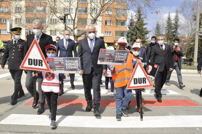 İçişleri Bakanlığı ve Valilikler tarafından ‘Yayalar Kırmızı Çizgimiz’ sloganıyla halka duyurulan ‘Yaya Önceliği Kırmızı Çizgimizdir’ projesi kapsamında 81 ilde yaya geçidini kırmızıya boyama çalışmaları Eskişehir’de de İçişleri Bakanı Yardımcısı Mehmet Ersoy’un katılımıyla gerçekleşti.