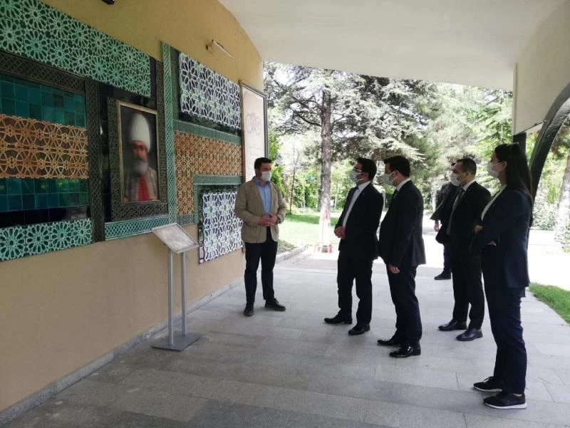 Heyet ilk olarak Osmanlı Devletinin kurucu Osman Gazi’nin kayınpederi devletin manevi kurucu Şeyh Edebali Türbesini ziyaret etti. Daha sonra yerleşke içinde Osmanlı Padişahları Tarih Şeridini gezen heyet, alan sorumlusu Ertuğrul Gündüz’den bilgi aldı. Kaymakamlar, ardından Alpu Kaymakamı Kübra Karaalioğlu’nu, Günyüzü Kaymakamı Burak Akeller’i, Mahmudiye Kaymakamı Harun Reşit Han’ı ve Sarıcakaya Kaymakamı Muhammed Taha Canpolat, Bilecik Valisi Bilal Şentürk’ü makamında ziyaret etti.