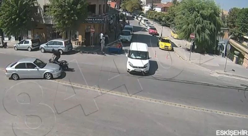 Eskişehir’de ters yöne dönmek isteyen bir otomobilin motosiklete çarpması sonucu meydana gelen trafik kazası MOBESE görüntülerine yansıdı.