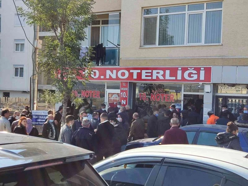 Çamlıca mahallesinde bulunan 10. Noterlikte özellikle araç alım-satımı yapmak isteyen vatandaşlar yoğunluk oluşturdu. Hafta sonu nöbetçi olması nedeniyle işlemlerini gerçekleştirmek isteyenler noterliğe akın etti. Noterliğin içinde ve bina önünde oluşan kalabalık, görenleri hayrete düşürdü. Sıra bekleyen vatandaşların sosyal mesafeye uymadığı da görüldü.