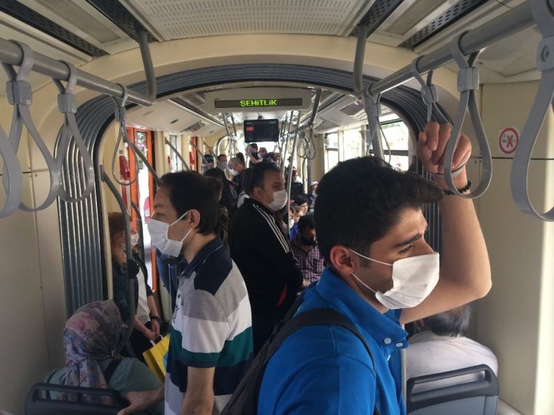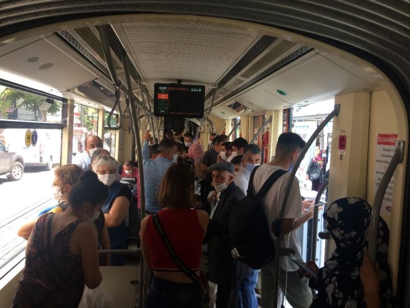 Eskişehirli vatandaşlar tarafından şehir içi ulaşımda sıklıkla tercih edilen tramvaylarda, sosyal mesafe hiçe sayılıyor.
