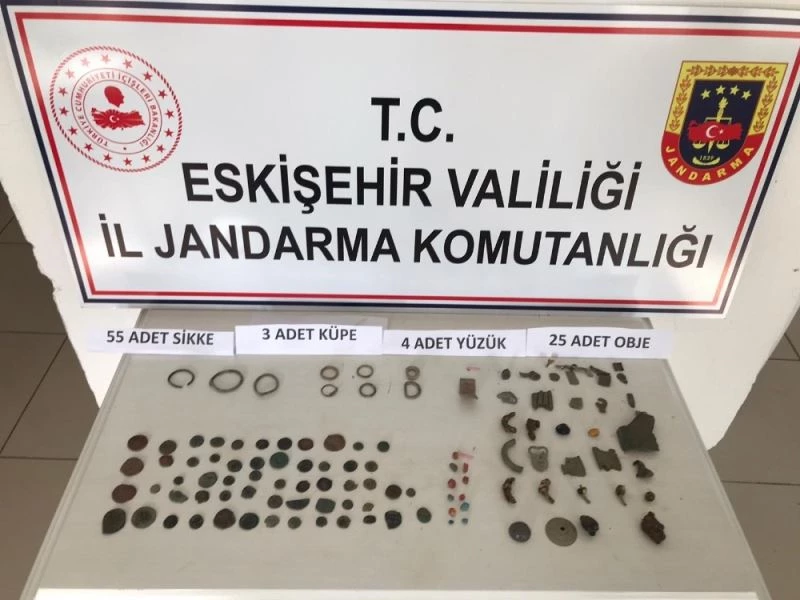 Eskişehir İl Jandarma Komutanlığı ekipleri tarafından düzenlenen operasyonda bir şüpheli, Roma dönemine ait çok sayıda tarihi eserle birlikte yakalandı.
