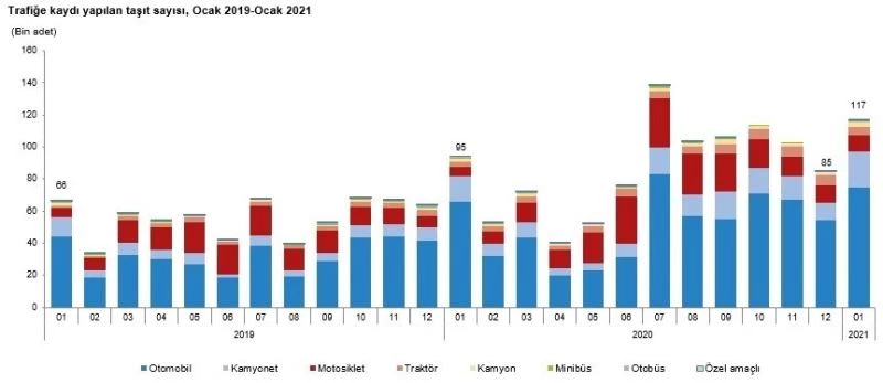 TÜRİK tarafından açıklanan verilere göre; pandeminin devam ettiği ocak ayında Eskişehir’de trafiğe kayıtlı araç sayısı 298 bin 875 oldu. Verilerde ülkede trafiğe kaydı yapılan taşıt sayısı bir önceki aya göre yüzde 37,5 arttığı da belirtildi.