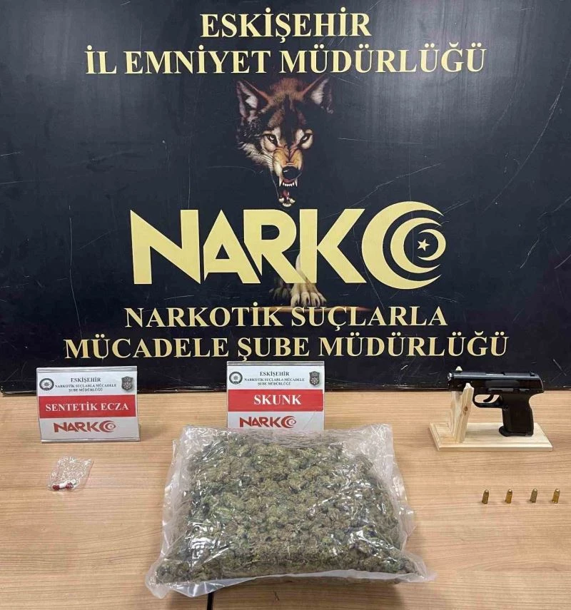 Eskişehir’de düzenlenen uyuşturucu operasyonunda 1 kişi yakalanırken, bin 60 Kilogram Skunk maddesi, 2 sentetik ecza, 1 ruhsatsız tabanca ve 4 fişek ele geçirildi.