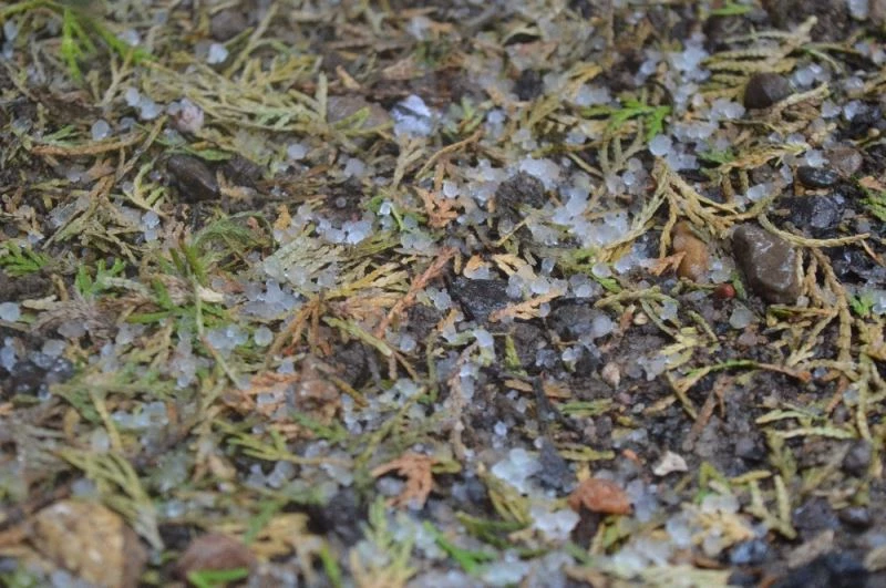 Öte yandan, yere düşen küçük dolu taneleri dakikalar sonra yok oldu.