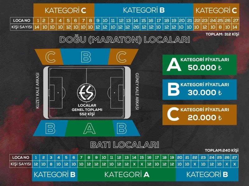 Eskişehirspor, 2022-2023 sezonu loca satışlarının başladığını sosyal medya hesaplarından duyurdu. Üç farklı kategoride satışı yapılan locaların fiyatı, 50 bin liradan başlıyor.